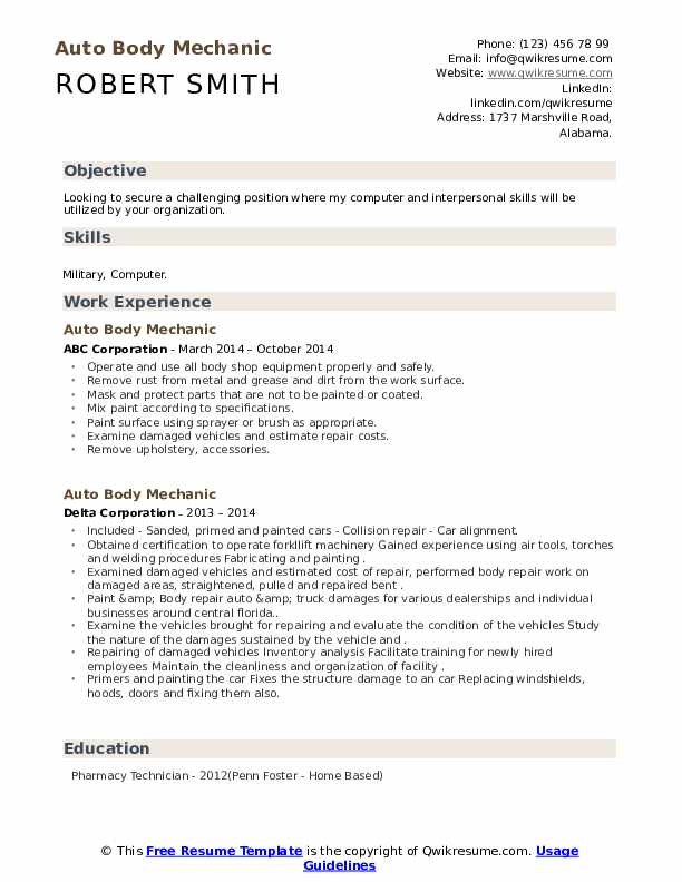 This guide was updated. Here are the key facts about auto body technician resumes to help you get the job. Build a CV Online.